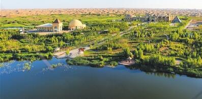悠悠歲月,由古而今。庫布其國家沙漠公園七星湖景區(qū),是大自然鬼斧神工雕琢下鑲嵌在庫布其沙漠上充滿傳奇和神秘色彩的七個(gè)美麗湖泊、原始草原與億利人金石可鏤的治沙決心所呈現(xiàn)的圣境。雄渾的大漠中,綿延著金黃色的沙丘和如潮般奔涌的綠意,不僅全面展示了庫布其沙漠生態(tài)治理的顯著成效,更創(chuàng)造出讓暢游沙漠綠洲成為現(xiàn)實(shí)的七星十八景:2000多年前漢武帝北逐匈奴所設(shè)的朔方郡古城遺址;千百年來草木自然生長,展示庫布其生物多樣性的烏日?qǐng)D草原;二十年前飽受沙害的牧民舊居;象征堅(jiān)韌、堅(jiān)守、頑強(qiáng)生命力的古老樹種——胡楊林;相傳成吉思汗曾在此祭拜長生天的一沙兩湖;依沙傍湖而建,體驗(yàn)陽光、沙灘和水上狂歡的天鵝湖歡樂島;唱響古老蒙古汗國宮廷禮樂的古如歌之鄉(xiāng);領(lǐng)略大漠民族馬背英姿的賽馬場(chǎng);充滿宗教神秘色彩和傳統(tǒng)民俗文化的許愿神樹和敖包祭禮;沙漠越野運(yùn)動(dòng)圣地,成就越野運(yùn)動(dòng)英雄之名的英雄坡;佇立于北方大漠,珍藏270多種從國外引進(jìn)的珍貴稀有熱帶植物的植物館;生長著300余種適宜沙漠環(huán)境的旱生、沙生植物的沙漠植物園;多媒體手段集中展示全球荒漠化防治領(lǐng)域技術(shù)和成果的科技館;以實(shí)物標(biāo)本形式展示庫布其沙漠生物多樣性的自然館;群鳥翔集、蘆葦茂密、風(fēng)光旖旎,可以臨湖悠然而居的大漠天池——大道圖湖;飽含大漠文化、流淌沙漠藝術(shù)源泉的藝術(shù)館;為喚起人們對(duì)荒漠化防治工程的重視和支持,社會(huì)各界人士親手打造的光彩植樹林;彰顯億利人荒漠化防治成效的沙峰綠谷。