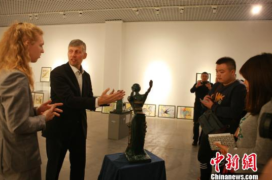 圖為亞歷山大·沙德林介紹達利的著名雕塑《燃燒的女人》高呂艷杏攝