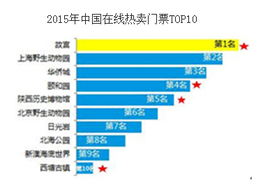2015年熱銷景區(qū)門票TOP10中,以北京景區(qū)數(shù)量最多;同時,歷史文化類占四成。隨著文化旅游市場迅速發(fā)展,促使歷史文化類旅游這種具有文化教育意義的資源成為熱門產(chǎn)品。