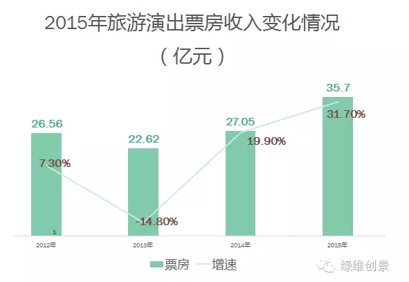 2015年旅游演出實(shí)收票房35.7億元,觀眾達(dá)4713萬人次。全年旅游演出實(shí)收票房達(dá)35.7億元,同比增長31.7%。