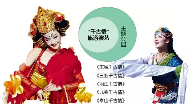 “千古情”是以主題公園為依托,由“中國演藝第一股”宋城演藝打造的旅游演藝品牌。目前已經(jīng)擁有《宋城千古情》、《三亞千古情》、《麗江千古情》、《九寨千古情》、《泰山千古情》等千古情系列演出,每一個(gè)千古情都是一個(gè)城市的文化傳奇。此外,宋城演藝還將在桂林、上海等地打造十臺(tái)以上的"千古情"系列作品,實(shí)現(xiàn)千古情的品牌連鎖經(jīng)營。
