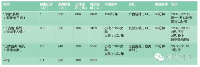 《宋城千古情》目前每年投入1000萬收入就達(dá)2億; 《夢(mèng)里老家》開演8個(gè)月就收入2500萬元;《印象?劉三姐》已成為世界旅游組織目的地會(huì)議、最佳休閑渡假推薦項(xiàng)目。