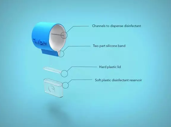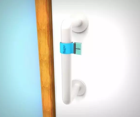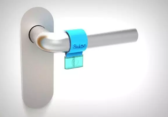 辦公室每天很多人進(jìn)進(jìn)出出,門把一進(jìn)一出都需要用手拉一下,實(shí)際上門把手上的細(xì)菌比馬桶還要多,對(duì)于有潔癖的人士是難以接受的。Swipe是一個(gè)迷你的門把手消毒滑塊,對(duì)于那些特別愛干凈的人來說相當(dāng)有用。將Swipe套在門把上,開門時(shí)拽著Swipe的一端來回一滑,整個(gè)把手就消毒干凈,你就能放心地握著門把開門,也體現(xiàn)出設(shè)計(jì)師相當(dāng)注重生活細(xì)節(jié)。