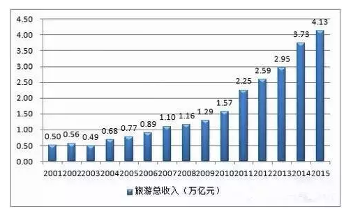 國家統(tǒng)計(jì)局發(fā)布的2015年數(shù)據(jù)顯示,在2015年全國10億元以上的在建旅游項(xiàng)目有2057個(gè),50億元以上的在建旅游項(xiàng)目404個(gè),投資額100億元以上的旅游項(xiàng)目185個(gè)。比上年增長10.5%;全國旅游總收入約34200億元,比上年增長13.1%。