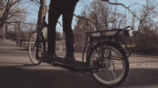 這兩特別的自行車名叫Lopifit,看上去就是跑步機與自行車的混合體,只要在履帶上像平時步行一樣行走,就能驅(qū)動Lopifit前進,簡直就像邁克爾·杰克遜的太空漫步,相當酷。