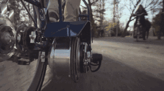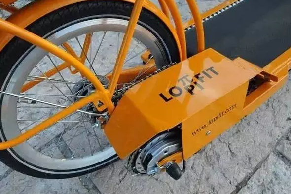 在車輪后方帶有一個250W的驅(qū)動馬達,當行走時就能帶動馬達轉(zhuǎn)動,從而使履帶循環(huán)滾動,讓自行車行駛。車速也取決于使用者步行的速度,具有6當速度可調(diào),最高時速可達25公里/小時,續(xù)航可達55公里。