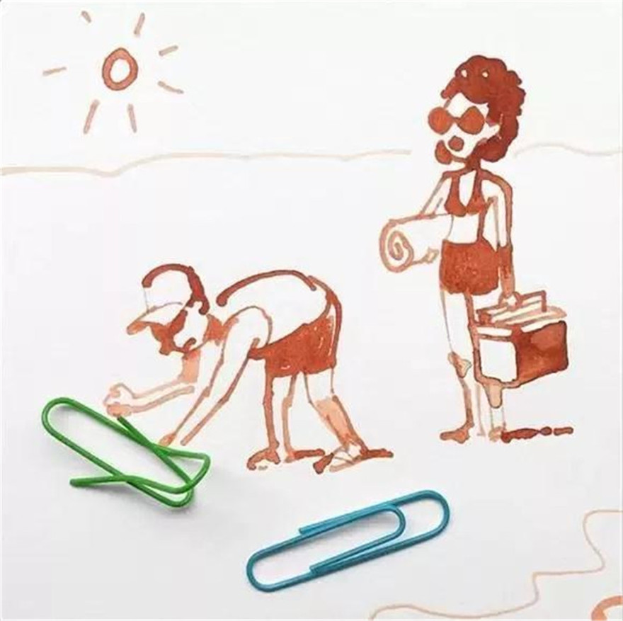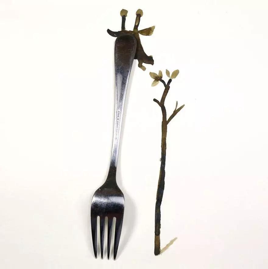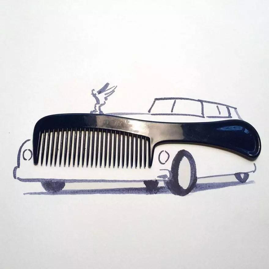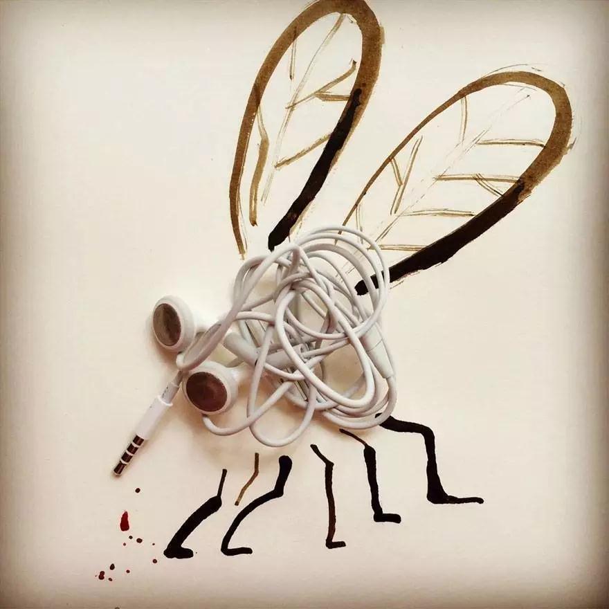就比如說他用耳機、剪刀、墨水瓶等很普通的東西創(chuàng)作出了許多非常有意思的作品