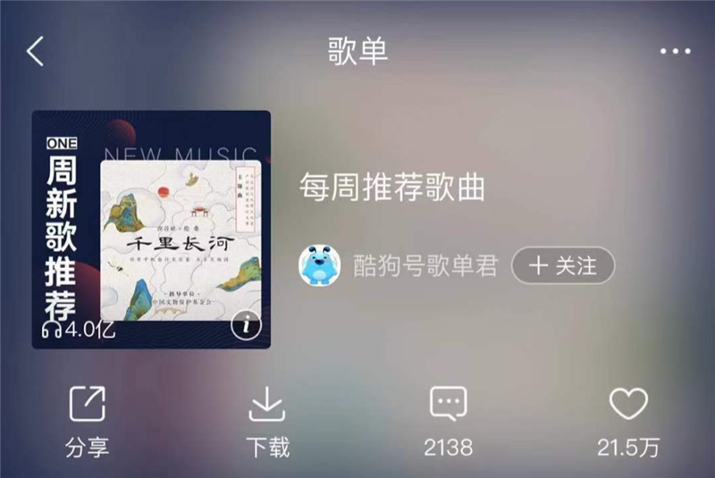 8月31日,由國家文物局指導(dǎo)、中國文物保護(hù)基金會主辦的“大運河文化帶文化遺產(chǎn)創(chuàng)新創(chuàng)意設(shè)計大賽”閉幕式暨頒獎典禮在京舉辦??峁芬魳纷鳛閲鴥?nèi)領(lǐng)先的數(shù)字音樂服務(wù)商,攜手網(wǎng)絡(luò)原創(chuàng)音樂社團(tuán)汐音社,為此次大賽策劃籌備了主題曲《千里長河》,并由知名原創(chuàng)古風(fēng)歌手、5sing中國原創(chuàng)音樂基地音樂人倫桑演唱。主題曲上線酷狗音樂“每周推薦”歌單,目前播放量已過4億,獲得眾多網(wǎng)友的關(guān)注。